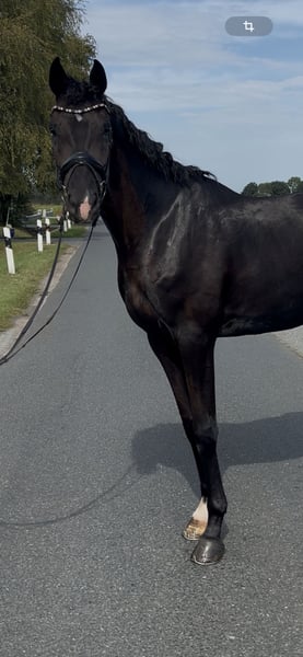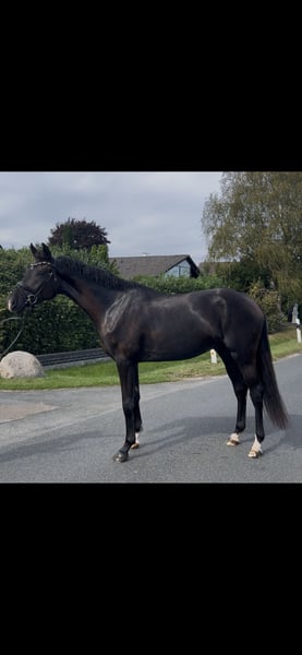 🌟🌟🌟Dwayne DJ🌟🌟🌟 A 3-year-old black gelding for higher-level sports. Due to his calm and balanced nature in handling as well as when riding, he already shows confidence and a great overview. Still in development and youthful, but nonetheless with a lot of presence and charm. He has been under saddle for about 3 months. Directly from the breeder, where he was raised lovingly and with very good training from a young age. Dwayne spends the day in the paddock with other horses and is always friendly. A very good vet check including neck and back is available. Healthy and without defects or abnormalities. Loading, unfamiliar places, outdoor riding, and arenas are no problem. A fantastic training horse that leaves nothing to be desired. I would be happy to send videos/photos upon request with the full name provided. More horses available upon request.