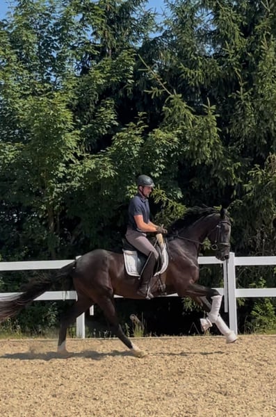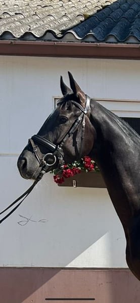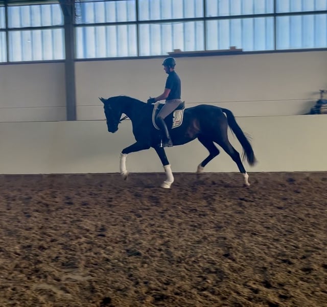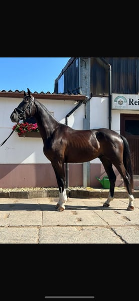 Zum Verkauf steht ein dreijähriger Rappwallach von Don Nobless x Florenz x San Amour. Er ist bereits solide angeritten und kann nächste Saison in Reitpferde und Dressurpferdeprüfungen vorgestellt werden. Körperlich steht er noch etwas in der Entwicklung ist aber mit seinen vier weißen Beinen und der tollen Blesse ein absoluter Hingucker. Er ist 172 cm groß und mit drei guten Grundgangarten ausgestattet. Videos und TÜV gerne per WhatsApp 015757375745