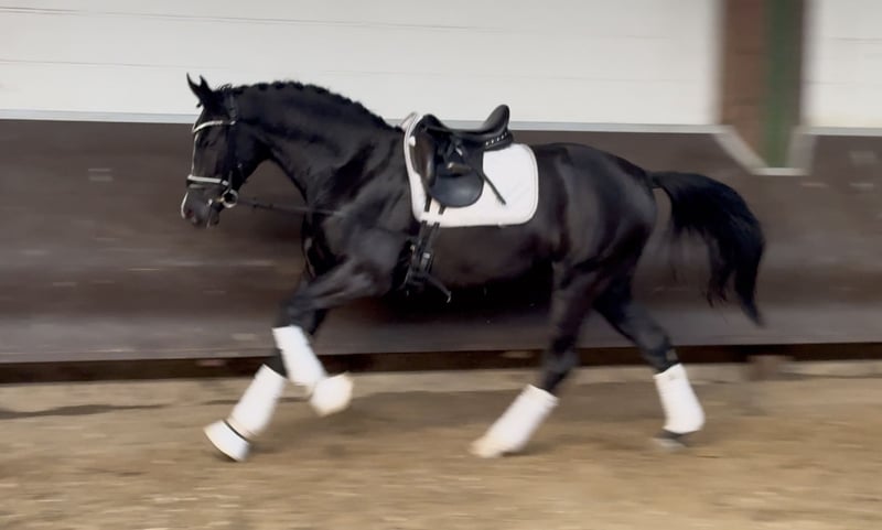 Deze elegante, glanzzwart en beweeglijke 2,5-jarige nakomeling van Café au Lait overtuigt volledig door kwaliteit, uitstraling en pedigree! De moeder is eveneens zeer expressief en beweeglijk, was zelf een Elietauktionspaard was en afkomstig is uit een staatsprijsklasse merrie met uitstekende prestaties in de SLP. De vader, Café au Lait, kampioen van zijn keuring, winnaar van de HLP en finalist van de Bundeschampionat, was zelf succesvol in de zware klasse en heeft de laatste jaren naam gemaakt als dubbelslaggever met topnageslacht. Zo werd Café’s Casimir (Café au Lait x Calido x Grannus) uitgeroepen tot de meest gewilde veilingtopper van de Oldenburger Eliteauktion, en is op jonge leeftijd al een serieuzer winnaar in S-dressuur en internationaal succesvol in Intermediaire I. De merrie Kasselmann’s Café’s Caletta (Café au Lait x Calato) heeft eveneens al S-dressuurplaatsen en is internationaal Grand Prix-winnaar. Café’s Matts (Café au Lait x Don Frederico) was het op een na duurste dressuurpaard van de Oldenburger Summer Mixed Sales. Andere jonge paarden uit springgerichte moederlijnen zijn meerdere keren geplaatst in dressuurproeven van A tot M en vallen op door hun beweeglijkheid en rust. Het is onmiskenbaar dat nakomelingen van Café au Lait ook in de springsport tot de zware klasse overtuigen, bijvoorbeeld uit onze eigen fokkerij: - Café’s Champus: gekeurd, vicewereldkampioen jonge paarden - Café Junior: gekeurd, internationaal succesvol in Saoedi-Arabië - Café’s Columbo: gekeurd en sportief succesvol in Frankrijk - Café’s Don Rubin: gekeurd, op 4-jarige leeftijd brons op het Dobrocker Deisterkampioenschap en momenteel gekwalificeerd voor het Bundeschampionat in zijn tweede springpaardenklasse M Bij Paul Schockemöhle is Café au Lait al meerdere internationaal succesvolle springpaarden voortgebracht, waaronder “Royce”, winnaar van de FEI CSI5* $500.000 Rolex Grand Prix in Wellington. Café au Lait zelf was onder Philipp Weishaupt finalist van het Bundeschampionat en succesvol tot S***-springen, maar beschikt ook over drie spectaculaire GGA’s en is dressuurmatig op S-niveau opgeleid. Onze veulentjes krijgen dagelijks mineralen en veulenvitaminen, regelmatig EQUISTRO Haemolytan en Ipaligo Foal, ontworming en hoefsmidbezoeken zijn vanzelfsprekend. Ook de moederdieren krijgen tijdens de dracht speciale merrievitaminen, dagelijks krachtvoer, lijnzaadolie en ruwvoer ad libitum. Zo blijft onze nakomeling altijd in topconditie en stralend in de vacht! Meer veulentjes en jonge paarden uit eigen fokkerij op aanvraag. Een deel is ook te vinden onder andere advertenties. Er worden regelmatig ook drachtige fokmerries aangeboden. Voor vragen, video’s etc. uitsluitend vooraf via WhatsApp. Cafe’s Fernando beschikt inmiddels over actuele, zeer goede röntgenfoto’s. Tot enkele dagen geleden nog op de zomerweide, heeft hij inmiddels de basisopleiding doorlopen en wordt in de herfst langzaam aangezet tot rijden.