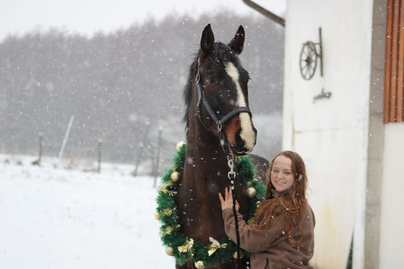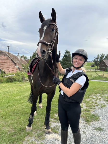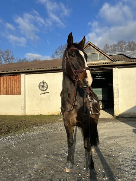 Zum Verkauf steht ein 2022 geborener Wallach, der uns menschlich ganz besonders ans Herz gewachsen ist. Er ist bei uns geboren und war von Anfang an als Verkaufspferd geplant – nicht wegen seiner jetzigen Thematik. Umso schwerer fällt uns dieser Schritt, denn wir hatten uns seine Zukunft ganz anders erträumt. Diese Entscheidung ist mit sehr viel Herzschmerz verbunden. Er ist ein herzensguter, verschmuster und verspielter Kerl, unglaublich menschenbezogen und im Umgang vielen Jungpferden weit voraus. Schmiede- und verladefromm, in jeder Lebenslage brav und unkompliziert, im Gelände sowie bei Auswärtstrainings zeigt er sich mutig und gelassen. Er möchte einfach alles richtig machen. Ein Pferd mit einem Charakter aus Gold und ehrlichem Wesen, das man einfach gernhaben muss. Aufgrund der damaligen Diagnose „zu lockere Kniebänder“ wurde er schonend angeritten. Er kennt Schritt, Trab und Galopp in der Halle, erste kleine Sprünge unter Sattel und Ausritte. Das letzte Dreivierteljahr wurde er – ohne Wissen über die spätere Diagnose – ganz normal angeritten. Vom Reiter aus waren seine Besonderheiten kaum zu merken: manchmal etwas unbeholfen, jungpferdetypisch. Leider zeigten sich mit der Zeit weiterhin Auffälligkeiten der Hinterhand. Nach weiterer Abklärung stehen Verdachtsdiagnosen wie Ataxie sowie hinten rechts eine Tendenz Richtung Hahnentritt im Raum. Die Symptomatik ist nicht ganz „klassisch“: im Schritt und engen Wendungen wirkt er oft, als wüsste er nicht genau, wo er die Füße hinsetzen soll. Im Trab etwas sichtbar, im Galopp weitgehend unauffällig. Aber !nie! lahm. Rückwärtsrichten ist problemlos möglich, sowie keine Probleme beim Antraben oder Angaloppieren.. Aus Verantwortung und zum Wohl des Pferdes verkaufen wir ihn vorsorglich als bedingt reitbar. Wie sich seine Entwicklung weiter gestaltet, kann man nicht sagen. Vorreiten natürlich möglich. Auch einige Videos vorhanden! Wir wünschen uns für ihn Menschen mit Herz, Geduld und Pferdeverstand sowie Jungpferdeerfahrung – einen Platz, an dem er geliebt wird und einfach Pferd sein darf. Er ist ein absolutes Herzpferd, das es verdient hat, so genommen zu werden, wie es ist. Wir denken, dass er im Freizeitbereich und als Ausreitpferd sehr gut aufgehoben wäre. Nur an Offenstallplatz, Bewegung tut ihm gut. Kein Notverkauf! Nur an Bestplatz! Platz vor Preis Zähne gemacht (September 25), letzter Chiro vor 2 Wochen, entwurmt und geimpft. Weitere Infos zu Verlauf, Diagnostik und Behandlungen gerne persönlich. 💛