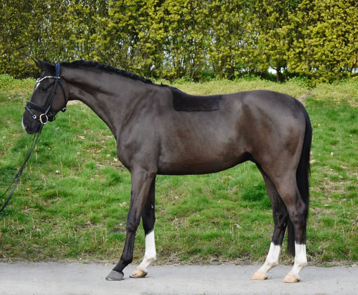 Zu Verkauf steht dieser 4-jährige, ca 165cm große Wallach von Donier x Sir Donnerhall. Don’t Stop ist Ende letzten Jahres angeritten worden und steht nun sicher an den Hilfen. Er ist sehr rittig und vermittelt ein tolles Reitgefühl, gepaart mit drei sehr guten, schwungvollen Grundgangarten wächst hier ein spitze Ausbildungspferd heran. Ein absolutes Lamm im Umgang, völlig gelassen und abgeklärt, und auch unter dem Reiter möchte er immer gefallen! Dieser junge Wallach macht wirklich Spaß und wird die weitere Ausbildung sicherlich leicht machen! Es liegen gute Röntgenbilder vor. ‼️Bei Interesse und für Videos bitte ausschließlich telefonisch oder über WhatsApp unter 017621729218 melden. Anfragen über ebay oder ehorses werden nicht beantwortet.‼️ Das Pferd wird nicht zur Verfügung gestellt und kann auch nicht auf Raten gezahlt werden.