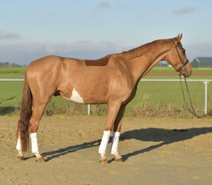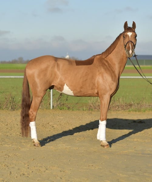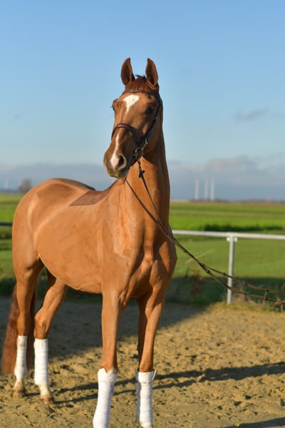 **Oldenburger Dressur-Nachwuchspferd Sangria HSH** Entdecken Sie unser wunderschönes Oldenburger Dressur-Nachwuchspferd – dieser tolle Kerl ist ein wahrer Schatz! Mit seinem liebenswerten Charakter überzeugt er sowohl im Umgang als auch beim Reiten. Er ist absolut brav und benimmt sich wie ein erfahrener Profi, obwohl er sich noch am Anfang seiner Ausbildung befindet und viel lernen möchte. Bereits jetzt zeigt er sich sicher in allen drei Grundgangarten (GGA) und wir freuen uns darauf, ihn weiter auszubilden. Ob in der Halle, auf dem Außenplatz oder im Gelände – er hat schon erste Erfahrungen gesammelt und meistert alle Herausforderungen mit Bravour. Sein außergewöhnliches Erscheinungsbild mit vier weißen, hochgestiefelten Beinen und einem auffälligen weißen Fleck unter dem Bauch macht ihn zum echten Hingucker im Viereck. Wir sind gespannt auf seine weitere Entwicklung! Dieses Pferd ist auch für weniger erfahrene Reiter ideal, da er stets anständig und brav ist. **Besonderes Angebot:** Bei sofortiger Mitnahme erhalten Sie 5% Rabatt auf den Verkaufspreis! **Testmöglichkeit:** Testen Sie dieses Pferd eine Woche lang bei uns! Diese Probewoche kann von talentierten Trainern begleitet werden, und Sie haben die Option, eine Kombination aus Unterricht und Testen zu buchen. Bitte beachten Sie, dass dies mit einer Probegebühr verbunden ist, die nicht vom Kaufpreis abgezogen wird. **Probereiten:** Gerne können Sie ihn bei uns anschauen. Die Kosten für das Vorreiten oder Probereiten betragen 30 € pro Person. Melden Sie sich gerne für weitere Informationen oder einen Besichtigungstermin!