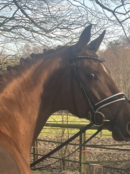 Vive le Rouge, ein sehr schöne zu reitender 4j. Wallach von Von und Zu x Quantensprung mit 3 sehr guten GGA. Fein zu reiten, lässt er sich dabei gut sitzen. Sein Charakter ist sehr zugewandt und auch mit anderen Pferden versteht er sich gut. Er ist bei uns mit viel Bewegung im Herdenverband aufgewachsen . Seine Mutter ist eine Halbschwester zum Grand Prix siegreichen Trakehner Siegerhengst Le Rouge. Seine Großmutter war Jahressiegerstute bei den Trakehnern. Züchter-Tüv liegt vor. Für weitere Fragen stehe ich gerne zur Verfügung.