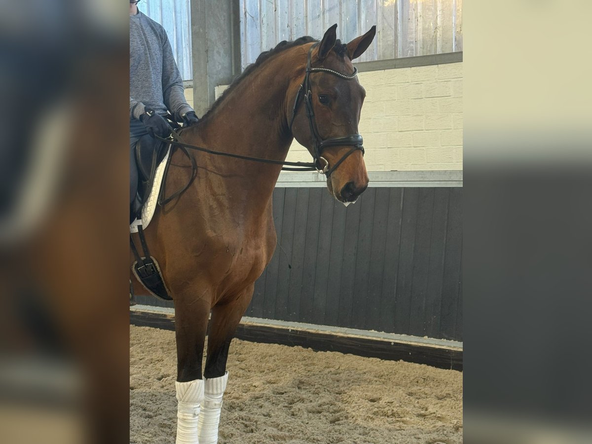 Elegant Oldenburger Gelding, born in 2022, seeking a rider. With a height of 170 cm, this dark bay young sporthorse presents himself as a promising talent for dressage. His impressive stature, combined with a harmonious and well-rounded basic training, makes him an ideal partner for ambitious riders who value quality and future potential. The young gelding impresses with his attentive and friendly nature, as well as his well-established foundation in training. He already shows initial aptitude in the dressage arena, is well accustomed to the rider, and possesses a solid base for further development. Thanks to his pedigree, he exhibits the typical qualities of his bloodline – elasticity, movement quality, and willingness to learn. This promising dressage young horse is well suited for development in the young rider or amateur classes, with the perspective of progressing to higher levels. He is healthy, well cared for, and eager to take on a new challenge in a dedicated home. Please feel free to contact us for more information or to arrange a personal impression of this promising Oldenburg prospect.