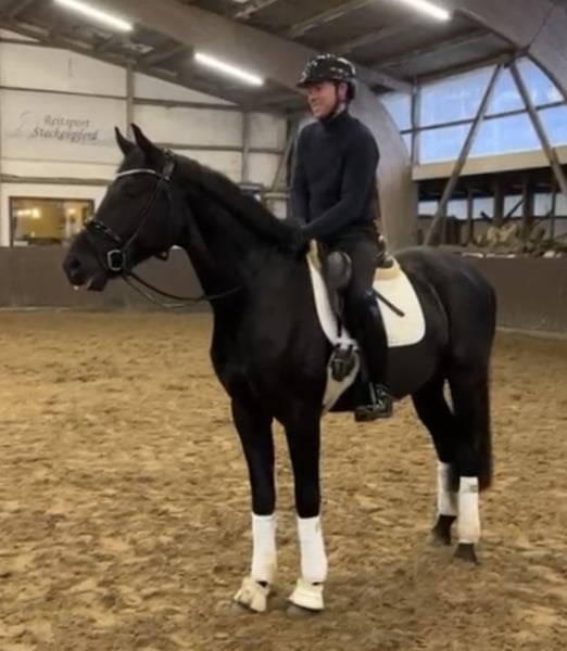 Beeindruckend hübscher Dressurnachwuchs mit ehrlichem Charakter – ein Pferd zum Verlieben. Im Auftrag der Züchter steht dieser besonders liebenswerte 4-jährige Oldenburger Rappwallach zum Verkauf. Fusion misst ca. 170 cm und stammt ab von For Romance – Quaterback. Sein Vollbruder ist bereits S*-erfolgreich und befindet sich weiter in Ausbildung Richtung Grand Prix. Fusion begeistert auf den ersten Blick mit seiner lackschwarzen Jacke, einem außergewöhnlich schönen Kopf – ganz ohne Abzeichen – sowie einem harmonischen, modernen Exterieur. Mindestens genauso überzeugend ist sein Charakter: verschmust, menschenbezogen und stets freundlich – ein echter Kuschelbär, der jeden Tag Freude macht. Unter dem Reiter zeigt sich Fusion als leistungsbereites, fein zu reitendes und gut balanciertes Nachwuchspferd. Seine drei gut durch den Körper schwingenden Grundgangarten, die gute Anlehnung sowie seine ausgeprägte Rittigkeit machen ihn besonders interessant für ambitionierte Amateure. Er vermittelt ein sehr gutes Reitgefühl und erleichtert den Einstieg in den Sport erheblich. Fusion wurde professionell angeritten und über den Winter sicher bis Dressurpferde-A-Niveau ausgebildet. Er ist bereit für seine ersten Turnierstarts und bringt viel Freude an der täglichen Arbeit mit. Aufgrund seiner feinen Art ist er auch für Junioren mit Jungpferdeerfahrung bestens geeignet. Ein aktueller TÜV mit Röntgenbildern inkl. Rücken, Hals, Genick sowie eine klinische Untersuchung liegen vor. Im Rahmen der klinischen Untersuchung wurde ein Herzgeräusch festgestellt, das in der Pferdeklinik Bargteheide mittels Herzultraschall abgeklärt wurde. Ergebnis: sportlich zu 100 % einsetzbar. Dieser Zufallsbefund wurde bei der Preisgestaltung bereits berücksichtigt.