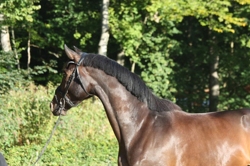 Rittiger, typowy młody koń do ujeżdżenia z trzema bardzo dobrymi podstawowymi chodami - Doskonały galop: duży, zrównoważony, pod górę - Bardzo dobry krok: wyraźny w takcie, luźny, z dużym zasięgiem Kłus o szczególnej mechanice: aktywny z tylnych nóg, elastyczna przednia noga Już zajmował miejsca w konkursie dla koni do ujeżdżenia, z bardzo dobrą postawą pod siodłem. Czysty w głowie, przyjazny w obcowaniu, przyjemny do siedzenia. Lokalizacja: Bad Zwischenahn