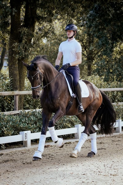 In vendita un cavallo castrato di 4 anni, di grande struttura e con molta energia, figlio di So Perfect, che ha già vinto un concorso di dressage per cavalli giovani di categoria A. Questo baio scuro affascina non solo per i suoi tre eccellenti passi di base, ma anche per la sua capacità di essere montato, la sua presenza e il suo carattere onesto. Si presenta sotto la sella motivato, desideroso di imparare e con un ottimo temperamento – un cavallo ideale per la formazione di cavalieri ambiziosi con l'obiettivo di competere nel dressage. Un giovane con un grande potenziale per il futuro, che entusiasma sia per l'aspetto che per le prestazioni. In caso di interesse, possiamo inviare un video di equitazione recente.