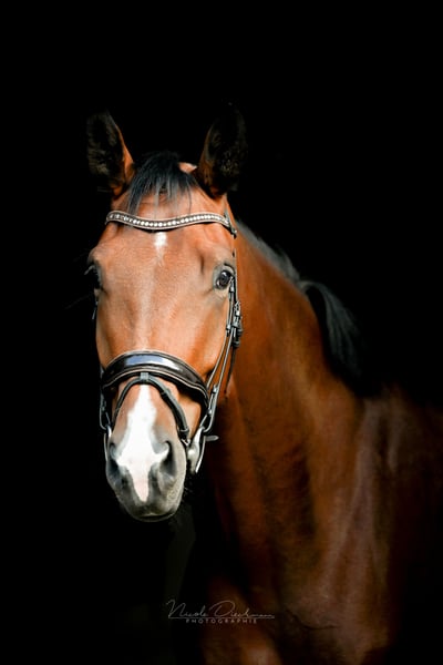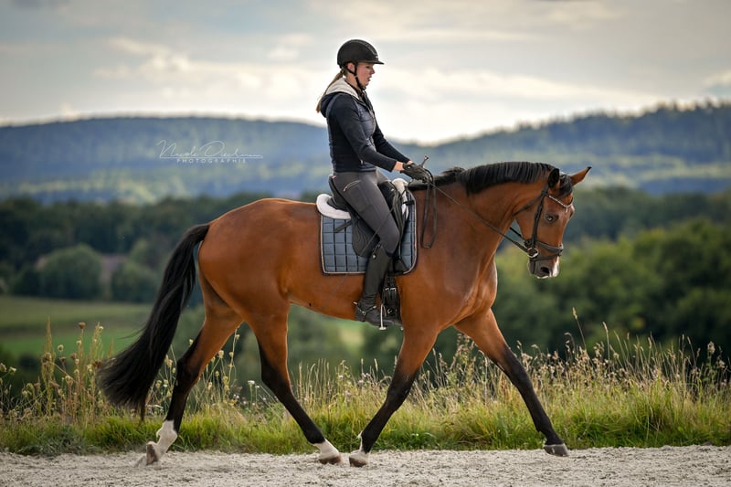 This exceptional 4-year-old Oldenburg gelding already impresses with his striking appearance and combines size, presence, and an exceptionally friendly nature. Standing at approximately 1.86 meters, he is a true eye-catcher! As a son of the top sire "Asgard’s Ibiza" from a very strong dam line, he possesses excellent genetic potential for a successful future. He moves with a spacious, ground-covering walk, an elastic, rhythmical trot, and a well-balanced, expressive canter. In training, he shows daily motivation, cooperation, and a keen willingness to learn. The gelding has been raised healthily, with proper horse care, and with great care and patience by us. He is familiar with the wash station, lunging, long-reining, groundwork, light pole work, and relaxed trail rides. He has already been introduced to the competition environment in a positive and stress-free manner and loads without issues. Currently, he is competing confidently at solid Dressage Horse Level A, having made significant progress in recent weeks, including the beginning of lateral work and short turns appropriate for his age. He knows the veterinarian only from routine dental care and vaccinations, and has been regularly examined by hoof orthopedists and osteopaths. A recent comprehensive health check from December 2023 is available. Beyond his physical qualities, the gelding stands out for his exceptional character: He is easy to handle, very human-oriented, open, honest, herd-compatible, and impressively composed for his young age. An highly promising young dressage prospect with all the potential to excel in the arena, and a personality that makes him a lifelong partner—even for ambitious amateurs. For his further development, we wish for supportive hands and an environment with plenty of movement and social contact. We welcome your phone inquiry and are happy to send videos upon request!