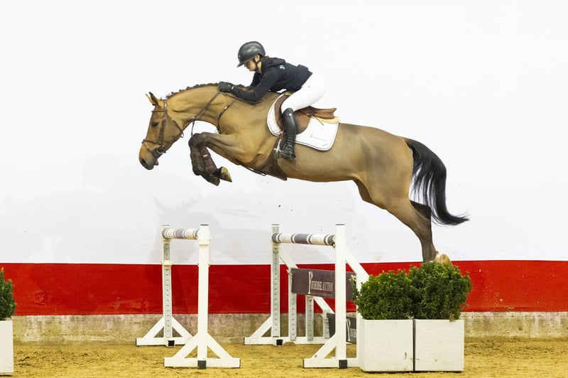 A light-footed horse with plenty of scope and experience at 1.20m level. She is pleasant to ride and combines quality with a good attitude. She has a big canter, is quick off the ground and jumps with conviction. Beautifully long-legged and modern in type. A horse with the right blood for sport and the mindset to develop further.