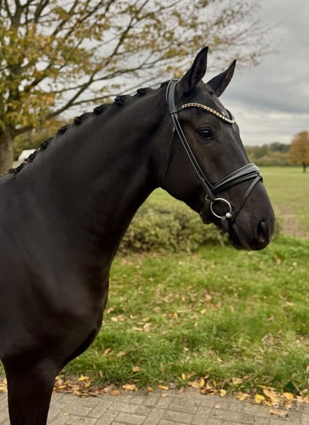 🌟 Elegant Youngster with Future Potential – Secret x Rohdiamant 🌟 This stunning black gelding (born 2021, approximately 16.1 hh) impresses with above-average rideability, willingness to perform, and excellent dressage lineage. He consistently demonstrates a willing work ethic, eagerness to learn, and solid training for his age. His excellent temperament makes him a pleasant partner both in daily handling and under saddle. With Secret as his sire, he inherits modern movement and the qualities of the new generation of dressage horses, while Rohdiamant on the dam’s side provides proven rideability and reliability – a combination that makes him a promising young talent for dressage. Quiet, trainable, and eager to perform – a genuine talent with great future prospects! 📍 Location: Münster (North Rhine-Westphalia)