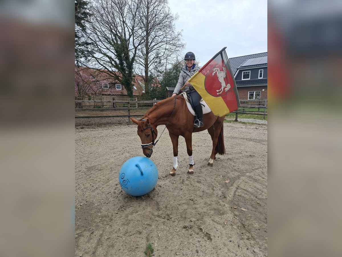 "Final Countdown" ist ein imposanter Wallach, der sich im Viereck aber auch über dem Sprung zu präsentieren weiß. Letztes Jahr wurde er schonend angeritten und ist erst seit Anfang des Jahres regelmäßig unter dem Sattel. Er ist ein feinfühliges Pferd, welches die Abwechslung in der täglichen Arbeit, aber auch eine entspannte Runde im Gelände genießt!