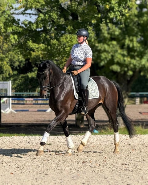 Dieser super-rittige Dressurwallach besitzt viel Grundqualität und Perspektive für die nächsten Trainingsstufen. Er ist absolut nervenstark, fleißig und gibt ein traumhaftes Reitgefühl. Altersgemäß befindet er sich auf L-Niveau, turnierfertig! Ein erstklassiger Röntgen-TÜV inklusive Rücken liegt vor. In den Dressurpferdeprüfungen der Klasse A konnte er sich in der vergangenen Saison mühelos vorne platzieren, mit tollen Noten von 7,2 bis 7,5. Aufgrund seiner hervorragenden Grundgangarten, seiner vorbildlichen Einstellung und seinem wunderbaren Charakter stehen diesem bildschönem Dressurpferd alle Wege offen. Auf Turnieren wie auch zuhause äußerst brav und zuverlässig! Sehr rittig, umgänglich, verladefromm, nervenstark. Alles was man sich als Reiter so wünscht. Der Wallach eignet sich für den gehobenen Leistungssport sowie aufgrund seines ausgeglichenen Temperaments und zuverlässigen Art auch ideal für alle Reiter mit etwas Feingefühl, besonders auch für Junioren und als sportliches Familienpferd. Er ist immer artig und motiviert. Auch im Gelände gut zu reiten! Der Wallach verfügt über eine erstklassige Abstammung und ist ein Sohn des legendären Totilas. Sehr gerne zeigen wir Ihnen dieses wunderbare Dressurpferd vor Ort und stehen für Fragen jederzeit zur Verfügung! Kontaktieren Sie uns gerne auch per WhatsApp: +49 176 55323449.