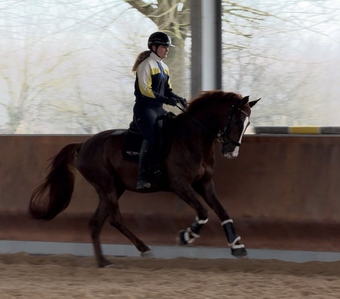 Gelding di 5 anni, carattere eccellente, molto facile da montare, non spaventato, completamente sottoposto a radiografie e con ottimo controllo veterinario. Un cavallo divertente, ideale per eseguire test di dressage e per uscite in hacking, con ottima biomeccanica. Situato a Milano, Italia. Spediamo in tutto il mondo.