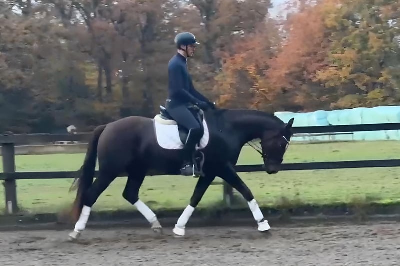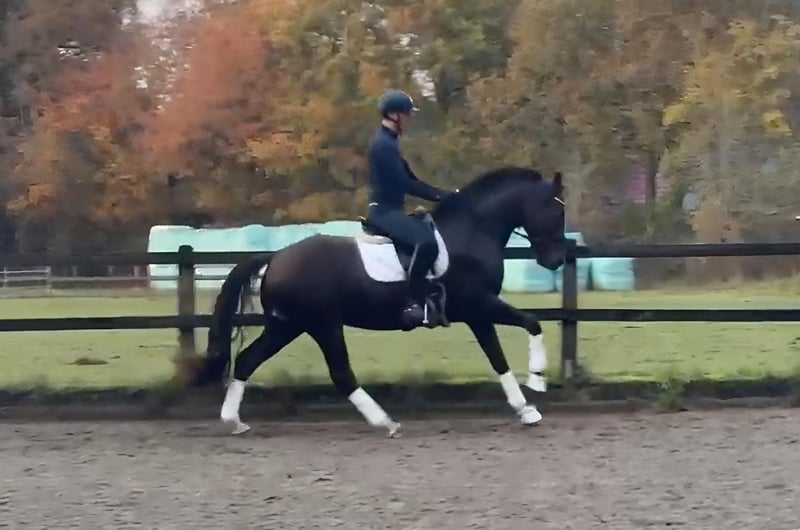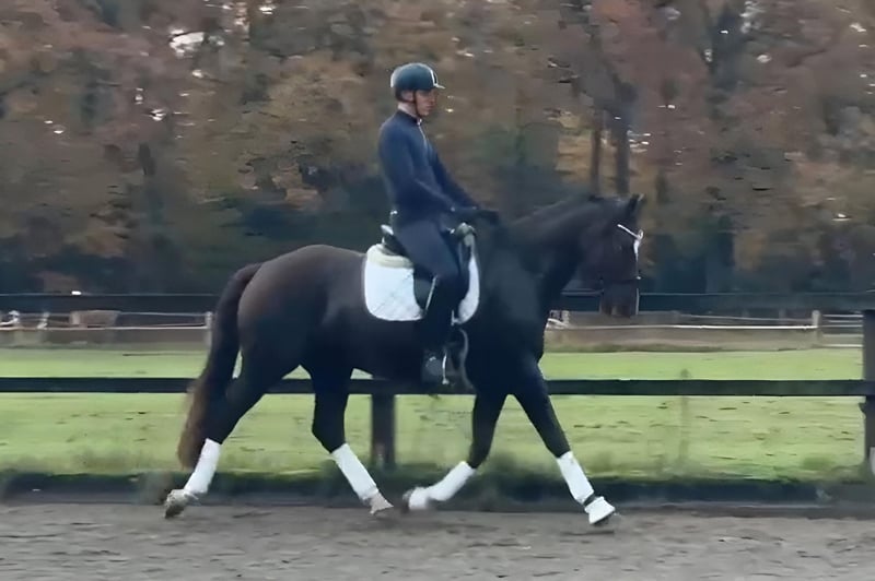 Ce hongre de quatre ans, de robe baie foncée (environ 1,70 m), provient d’élevage et se distingue par son calme, sa fiabilité et son tempérament équilibré. Son père est Total Hope, fils de Totilas et Weihegold OLD, qui a réussi jusqu’au Grand Prix. La lignée maternelle, issue de Blickpunkt (Belissimo), Donnerball et Quattro B, apporte un sang de dressage d’élite. Délicatement mis en selle, il montre un pas ample, un trot régulier et une excellente tendance à l’allure galopée ascendante. En manipulation, lors du maréchage et du chargement (même seul), il est toujours sage et facile, également sûr avec les enfants. Grâce à son tempérament très posé et à sa grande bravoure, nous pouvons envisager Torsti comme cheval de transition ou pour une famille. Il pourrait également être intéressant pour le voltige, bien que cela n’ait pas encore été testé. Actuellement, il vit en paddock avec un petit groupe hétéroclite. Les radiographies sont disponibles. Un hongre sincère et de qualité, avec un bel avenir devant lui, encore au début de sa carrière de cheval de dressage – vente en provenance d’élevage à un bon cavalier.