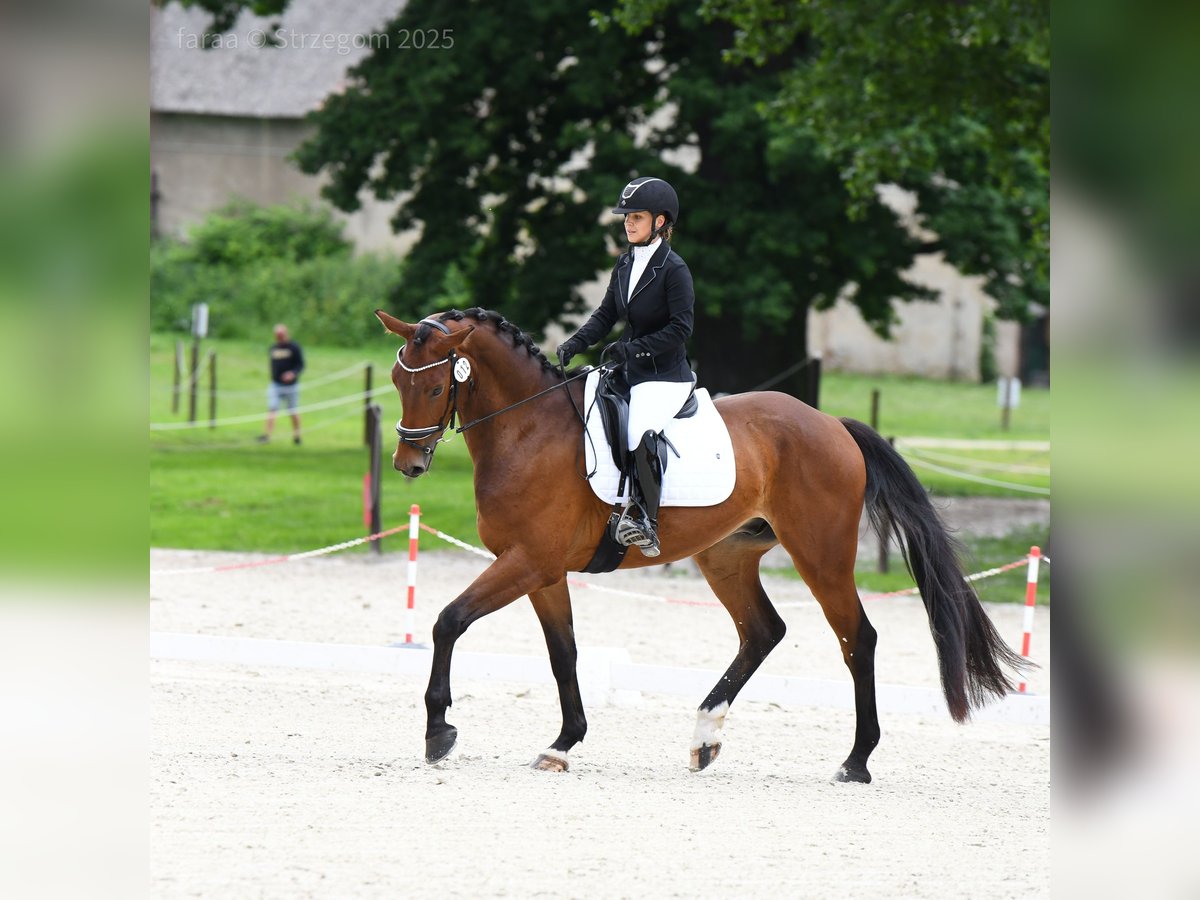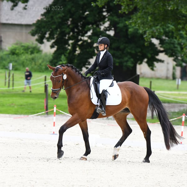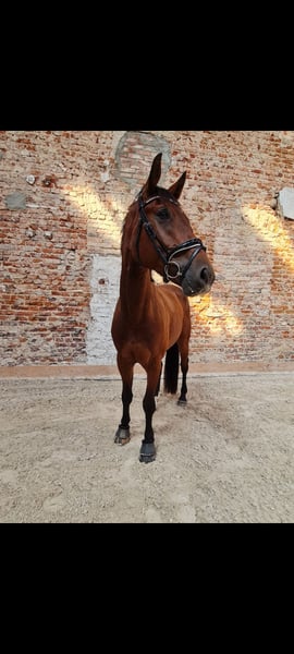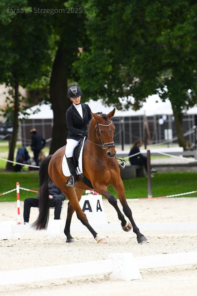 Eye-catching gelding with proven parentage on both sides Sire: Chico's Boy out of Carpaccio Dam: Vesper PJ out of Vulkano Ideal dressage competition horse for higher levels, extremely rideable, comfortable, with a wonderful uphill canter, a spacious walk, and rapid progress. Due to his young age, he is not suitable for amateurs. First start in L level scheduled for June 2025 – 2nd place in the round, ready for P level, performs canter transitions from walk, stops, yields, adds, and 15-meter circles. Learns new exercises very quickly. Easy flying changes in canter. Has ridden alone in the terrain as well as with another horse. Regularly vaccinated, dewormed, front shoes fitted, under the care of a physiotherapist. No issues with procedures, a sweet natured horse that seeks contact with humans. Housed in the paddock daily, used to the carousel, has experienced solarium sessions. Gets along excellently within the herd, conflict-free. Has a very good TUV, completed in February 2025, available for review. PRICE WILL INCREASE WITH TRAINING PROGRESS. For more information and videos, please contact me – Kamila at 788 101 497. Viewings available near Wrocław.