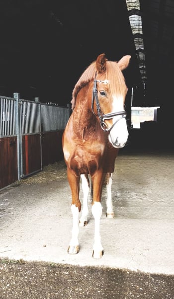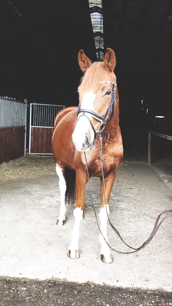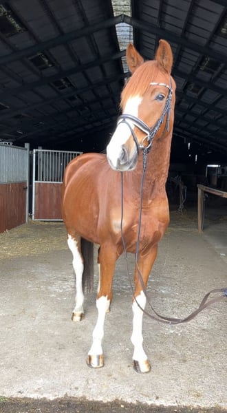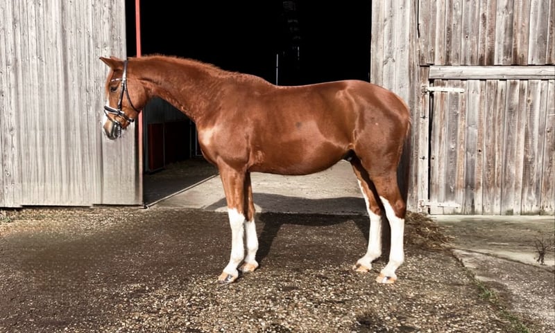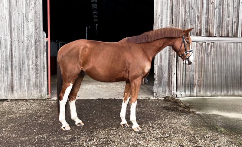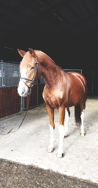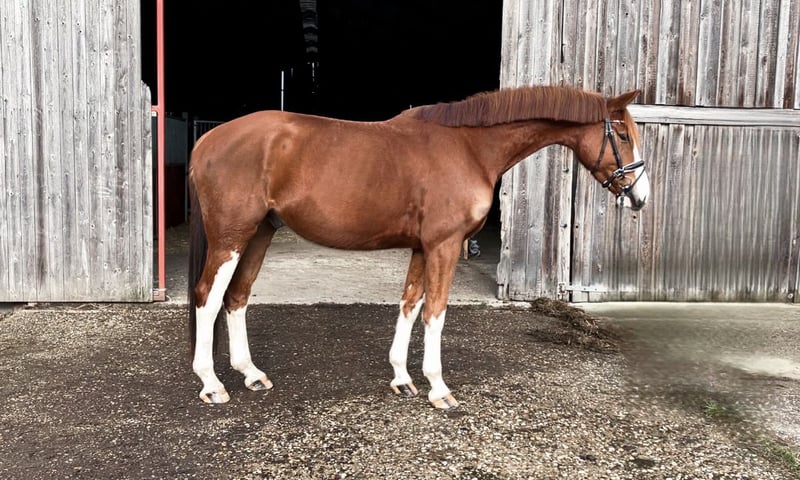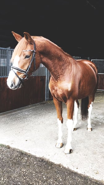 Chercheur d'attention ? À vendre, un magnifique hongre alezan avec une robe particulièrement attrayante, mesurant 1,70 m au garrot. Origines : De Niro Gold x Castellini Ce joli hongre séduit non seulement par son apparence élégante, mais surtout par son caractère doux et câlin. Au quotidien, il se montre très proche de l’homme, obéissant et facile à vivre – un véritable coup de cœur. Sous la selle, il est motivé et prêt à donner le meilleur de lui-même. Actuellement encore un peu réservé face à son environnement, il possède déjà une expérience en compétition et gagne en confiance. Avec un entraînement adapté, c’est un partenaire prometteur pour des cavaliers de loisir ambitieux ou pour le sport de compétition. Il est en bonne santé et possède un certificat vétérinaire en règle. Pour toute prise de contact sérieuse, n’hésitez pas à nous envoyer un message. Plus d’informations sur demande.