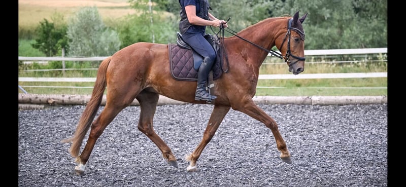 Zum Verkauf steht ein eleganter Fuchs-Wallach, geboren im Jahr 2021, direkt vom Züchter. Mit einem Stockmaß von 170 cm bietet er eine beeindruckende Erscheinung und viel Potenzial für den Dressursport. Sein freundliches Wesen und seine Lernbereitschaft machen ihn zu einem idealen Partner für ambitionierte Reiter, die gemeinsam weiter wachsen möchten. Der junge Oldenburger überzeugt durch seine gute Grundausbildung im Dressurbereich und zeigt bereits viel Talent und Elastizität. Bei Interesse oder für weitere Informationen stehe ich gerne zur Verfügung.