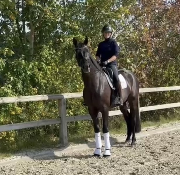 The Hope Diamond by Total Hope/San Amour/Fürst Heinrich out of the elite mare Chere Amie, brother of the highly successful Chere Celine (3 × finals of the World Championships for Young Dressage Horses, Burg Pokal, already successful at S*** level at 8 years old), with 3 very good basic gaits, approved for the licensing at 2 years old, meaning correct and TÜV o.b.B., friendly, approachable, balanced, no vices, diligent. Currently in training with Lena Hassmann.