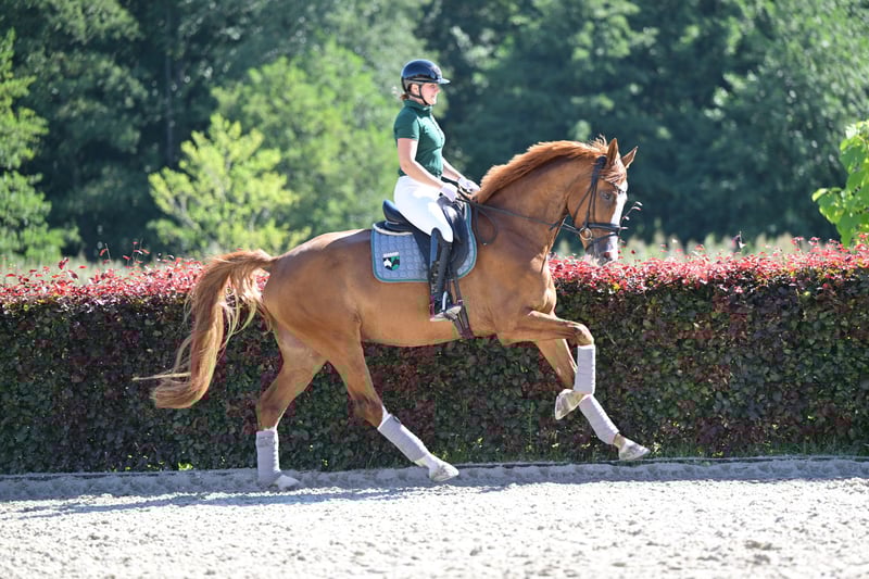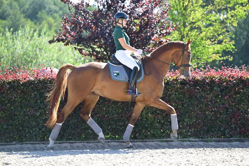 🌟Auffälliger Blickfang mit sportlichem Potenzial!🌟 5-jähriger Oldenburger Wallach von Sezuan x Ampere Du suchst einen auffälligen, rittigen Partner mit Perspektive für den Dressursport? Dann ist dieser charmante Oldenburger Wallach (2019) genau der Richtige! Abstammung: Vater: Sezuan – mehrfacher Dressurpferde-Weltmeister Mutter: Ampere – bekannt für Rittigkeit und Bewegungsqualität Exterieur & Interieur: • ca. 172 cm groß, modern im Typ • Ausdrucksstarker Fuchs mit Blesse – ein absoluter Hingucker! • Artig im Umgang, leichtrittig und lernwillig Ausbildung: • Sicher auf Dressurpferde A-Niveau • Zeigt drei gute, taktsichere Grundgangarten • Erste Turnierstarts sind geplant – bereit für den nächsten Schritt! . im Gelände zeigt er sich unerschrocken mit viel freude Einsatzbereich: Perfekter Partner für ambitionierte Amateure oder Nachwuchsreiter mit sportlichen Ambitionen – viel Potenzial für die Zukunft!