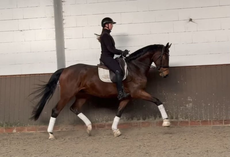 Liebe Kaufinteressenten, Für Fragen oder Terminvereinbarungen senden Sie uns bitte eine WhatsApp oder E-Mail. Telefonisch erreichen Sie uns WERKTAGS und am besten gegen Mittag. Sollte dem nicht so sein, bitte einfach eine Nachricht schreiben und wir melden uns zurück. Wir freuen uns auf Ihre Kontaktaufnahme! „Lui“ ist ein bildhübscher und hoch qualitativer Hingucker, der durch seinen Charme und seine sehr guten Grundgangarten von sich zu überzeugen weiß. Er verfügt über einen tollen Schub aus dem Hinterbein und seine großzügige Galoppade zieht sofort alle Blicke auf sich. Bei der Arbeit ist er unglaublich motiviert und hat sehr viel Freude, Neues zu erlernen. Er hat ein ganzes wunderbares Seitenbild und weiß sich toll unter dem Sattel zu präsentieren. Charakterlich ist er ein richtiger Kumpel und möchte immer gefallen und bei seinem Menschen sein. Ein sehr vielversprechender Youngster für den gehobenen Anspruch. Direkt vom Züchter. Guter TÜV vorhanden.