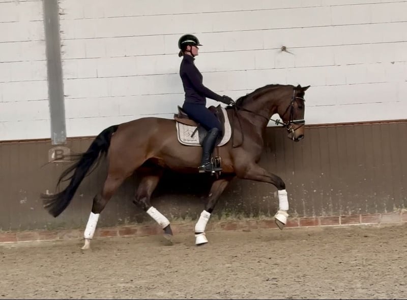 Liebe Kaufinteressenten, Für Fragen oder Terminvereinbarungen senden Sie uns bitte eine WhatsApp oder E-Mail. Telefonisch erreichen Sie uns WERKTAGS und am besten gegen Mittag. Sollte dem nicht so sein, bitte einfach eine Nachricht schreiben und wir melden uns zurück. Wir freuen uns auf Ihre Kontaktaufnahme! „Mo“ ist ein sehr hübscher, eleganter Wallach mit drei tollen Grundgangarten und einem intelligenten und wohlwollenden Charakter. Bei der täglichen Arbeit ist er immer sehr bemüht, lernt schnell dazu und möchte seinem Reiter sehr gefallen. Er lässt sich sehr angenehm sitzen und hat eine schöne Anlehnung, was mit dem Reiter ein ganz schönes Seitenbild abgibt. Für seine ersten Turnierstarts ist er bereit - ein sehr vielversprechende Dressurofferte zum direkt losreiten. Direkt vom Züchter. Aktueller TÜV vorhanden.