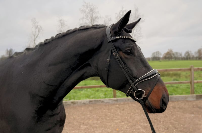Con il cuore pesante, ci separiamo dal nostro Loopielou. A causa di un’impossibilità di dedicargli il tempo che merita, non riusciamo a offrirgli l’attenzione che richiede. È incredibilmente desideroso di imparare e possiede un carattere equilibrato. Nel branco è il punto di riferimento della calma e sotto la sella dà sempre il massimo. Che si tratti di lavoro di dressage sotto la sella e a mano, di uscite a cavallo o di galoppate sui campi di stoppie, si comporta sempre in modo impeccabile. Salta con facilità cambi di galoppo volanti molto buoni e sta già eseguendo travers, senza essere mai stato allenato con pressione. Possiede una forte volontà di raccolta, nonostante la sua stazza.