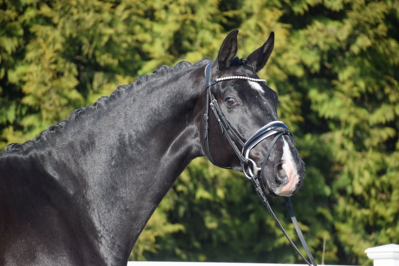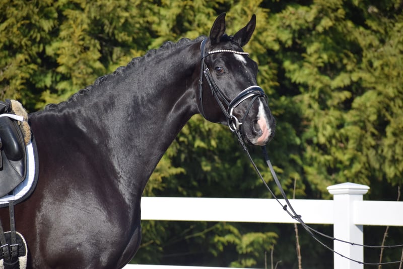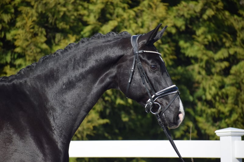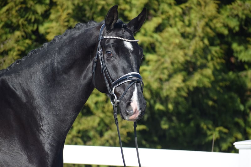 Successful in competitions (multiple placings / winner with a score of 8.7), a stunning, easy-ride dressage gelding with plenty of presence, expressive movement, and the heart in the right place – by Totilas bloodline – suitable for juniors! Representing the owner/breeder, this highly successful, 177 cm tall, 5-year-old Oldenburg gelding is a talented Rapp with excellent modern dressage pedigree from TOTAL MCLARAN (Totilas) x DONNERSCHWEE x ALABASTER. Visually, the powerful, clearly stallion-type, large-framed "TITUS" stands out with his sleek black coat (rear white markings + star + snip), his expressive face, striking neck, and harmonious conformation. In movement, he demonstrates a rideable, elastic dressage horse with three equally good, striking basic gaits, a swinging back, uphill tendency, appealing side profile, and a well-angled, powerful hind leg with high willingness to engage and carry weight. At competitions, "TITUS" has already achieved numerous placings in Reitpferde- and Dressurpferde A tests, including a Dressurpferde A victory with a score of 8.7. Since the beginning of his training, "TITUS" has been in professional work and is on Dressurpferde L level. Character-wise, Titus is confident, even in unfamiliar environments. He is straightforward in handling and under saddle. He is generally easy to work with and open to new experiences. Despite his age, he shows remarkable composure and bravery, combined with a calm demeanor. If you are looking for a horse with great potential and a true friend with a good heart, this is your chance. Due to his high cooperation, rideability, and honest character, he is also suitable for juniors and young riders. An excellent opportunity to acquire a fantastic horse. After purchase, "TITUS" can remain in our professional training and be presented at shows. A comprehensive, standard radiographic exam (back + neck) and TÜV are available.