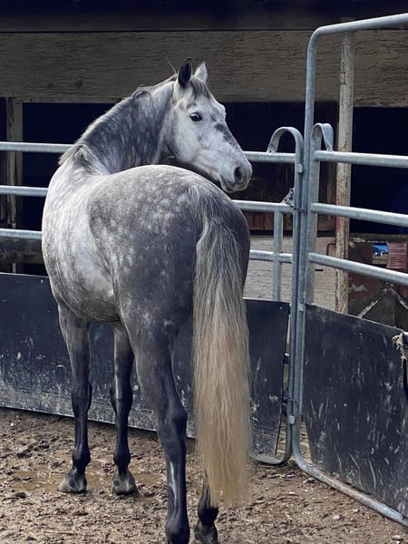 Verkaufe eleganten Oldenburger Wallach – ideal für Dressur und Springen. Zum Verkauf steht ein wunderschöner Schimmel-Wallach, geboren im Jahr 2020. Mit einem Stockmaß von 164 cm. Er ist super brav und unerschrocken. Er ist ein sehr elegantes Pferd im mittlere Rahmen mit einer praktischen Größe. Der Wallach ist als Allrounder für Dressur und Springen geeignet. Wir können ihn uns durchaus auch in der Vielseitigkeit vorstellen. Durch seine freundliche Art ist er sowohl für ambitionierte Freizeitreiter als auch für den sportlich orentierte Reiter eine hervorragende Wahl. Besonders zu erwähnen ist die schöne Bergaufgaloppade und die Übersicht am Sprung. Bei Interesse oder für weitere Informationen stehe ich gerne zur Verfügung. Vereinbaren Sie doch einen Termin für eine Proberitt und überzeugen Sie sich selbst von diesem vielversprechenden Pferd!