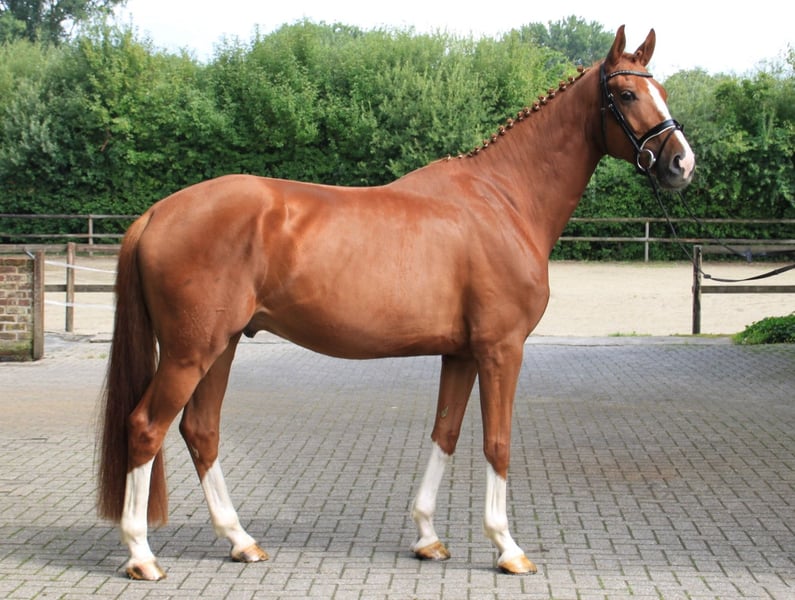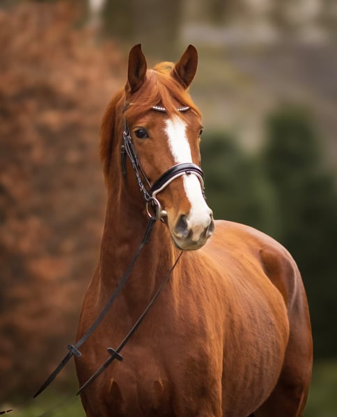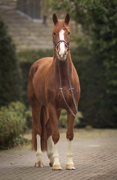 Charming and handsome gelding with three good basic gaits and excellent rideability. More information at www.dressagehorses-dedoncker.com. Copyright @ Katja Zimmermann