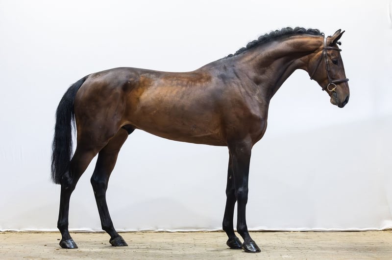 Very beautiful appearance; at first glance you see this is a complete horse. Well put together and therefore very comfortable to ride. Jumps with a lot of scope and good technique, with a notably strong hind leg. You will not easily find them more complete than this. Recently under saddle for 2 months. Sire Baloutaire PS – 1.60m level. Son of Balou du Rouet (1.50m) from the line of Baloubet du Rouet (1.60m), proven top sire. Dam Channy – competed at 1.35m level, daughter of Chacco-Blue (1.60m). Damline Granddam Conny – daughter of Converter I (1.40m). From this line: Lily – 1.40m Wathnan Cornest – 1.60m Conny Blue PS – 1.45m Further in the line: Charielle – 1.60m Barracuda – 1.50m Casus Bibendi – 1.60m Strong international sport line with multiple horses at 1.40m–1.60m level.