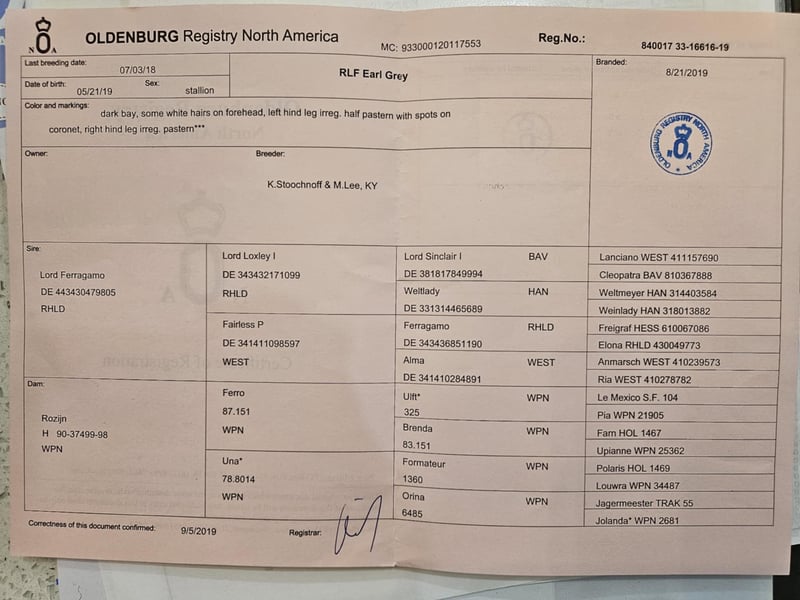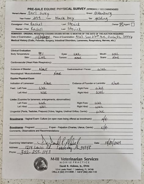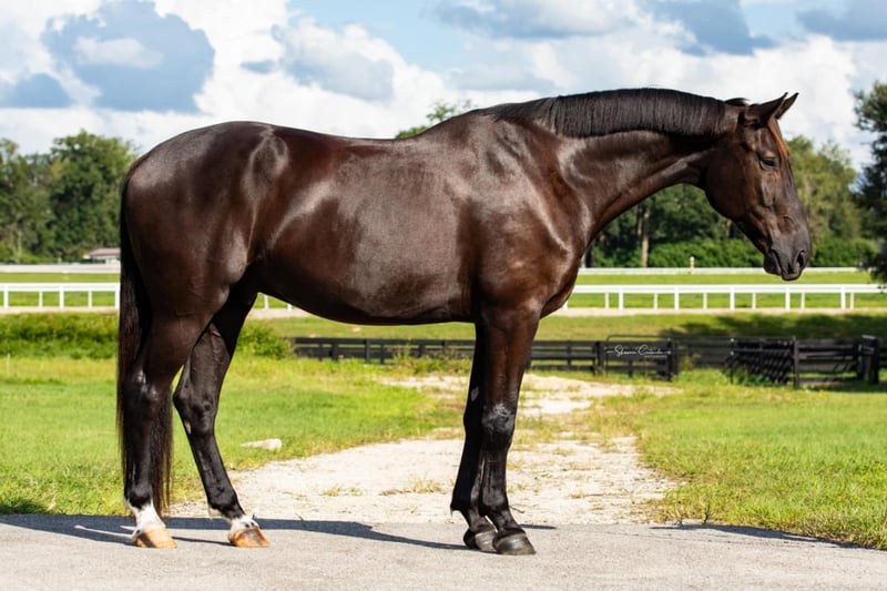 ONLINE AUCTION Place your bids at www.PlatinumEquineAuction.com Starting Bid $3500 Auction ends November 17th, 2024 Need a new saddle? Check out White Rock Saddles on our website or Facebook! Fancy young Warmblood investment horse! Dressage, H/J, or eventing. Lord Ferragamo x Ferro x Formateur Earl Grey, aka Early, is a 2019 black bay Oldenburg gelding standing 16.2h sticked barefoot. He won 1st place at 2020 Young Horse qualifiers, was Reserve Champion at USDFBC 2021 Regional Finals with a 78.7% and a 79% from both judges and showed Materiale dressage in 2023 scoring 76.2%. Early schools training level dressage, trail rides, and has started over fences. He loves xc schooling and has jumped ditches, banks, coops, logs, and more! His sweet puppy dog personality, stunning looks, and eye-catching fancy Warmblood movement make him a barn favorite. He has been brought along slowly and correctly with an emphasis on the basics and longterm soundness. Early is a barefoot easy keeper and is up-to-date on shots, Coggins, deworming, sheath cleaning, hoof trimming, and floating. Current pre-purchase exam and CLEAN full set of X-rays on file (front feet, hocks, stifles, and back) Watch his video and call Rachel with Show Me Sport Horses 352-467-5695. Located in Ocala, FL. ONLINE AUCTION Place your bids at www.PlatinumEquineAuction.com Starting Bid $3500 Auction ends November 17th, 2024 Need a new saddle? Check out White Rock Saddles on our website or Facebook!