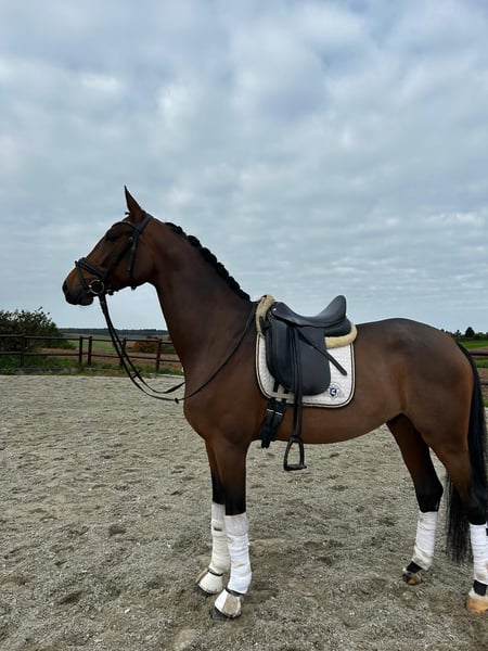 Franklin impresses with his elegant appearance, exceptional movement, and remarkable willingness to perform. This typy Oldenburg stallion (approx. 172 cm) consistently demonstrates motivation and talent for the higher levels of dressage. With his light-footed, expressive movement and high aptitude, Franklin leaves nothing to be desired – a true dressage horse for the big arena! He is placed in Dressage Horse Class A and has completed L-level training, providing an excellent foundation for his further sporting development. In handling, Franklin is an absolute sweetheart: shoe and loading friendly, well-behaved, and reliable in daily training. A dream horse for the discerning amateur or professional rider seeking a talented dressage horse with potential.