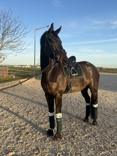 Zum Verkauf steht ein talentierter, unverbrauchter 7-jähriger Wallach mit einer Platzierung in einer Dressurpferde A. Er überzeugt mit drei sehr guten Grundgangarten. Besonders hervorzuheben sind seine elastische Trabmechanik und der gut durchgesprungene, ausbalancierte Galopp. Der Schritt ist klar im Takt und bodenübergreifend. Charakterlich zeigt er sich leistungsbereit und aufmerksam mit einer angenehmen Arbeitseinstellung. Er möchte gefördert werden und bringt eine gute Perspektive mit. Mit weiterem Training besitzt er Potenzial für das große Viereck und eignet sich für ambitionierte Reiter mit entsprechender Erfahrung. Aufgrund seiner Sensibilität und Qualität ist er nicht für Anfänger geeignet. Bei ernsthaftem Interesse freuen wir uns über Ihre Kontaktaufnahme.