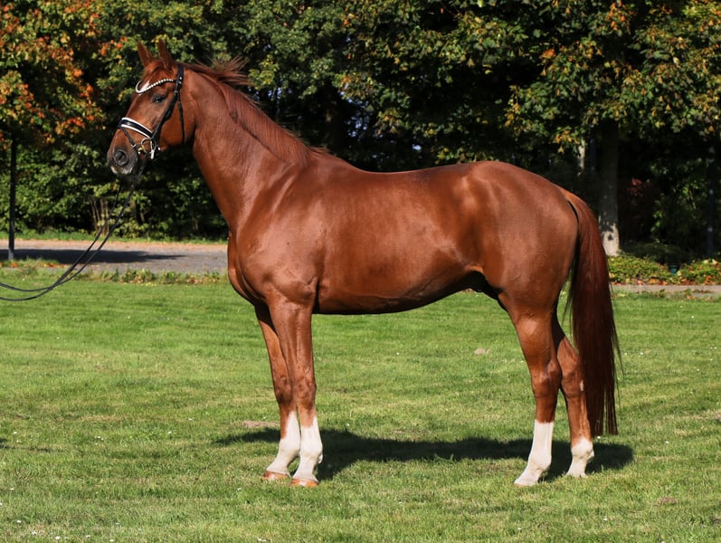 Este imponente caballo alezado de color castaño, se ofrece a la venta con gran pesar debido al embarazo de la propietaria. Sir Savien fue entrenado de manera ejemplar por una amateur y pudo desarrollarse tranquilamente en casa. Hasta ahora, ha sido montado con mucho cuidado por esta dama, transmitiendo también esa sensación de montar: conoce la pista, el outdoor y el campo, y no es nervioso ni "espeluznante". "Hermann" destaca por sus tres muy buenos movimientos con mucha fuerza y conexión desde la parte trasera. Está a nivel de doma M y, con un entrenamiento adicional, seguramente logrará rápidamente dar el salto a la categoría de Gran Premio. Dado que el caballo no ha participado en concursos hasta hace poco, lo inscribimos de forma espontánea en una prueba de doma M, en la que pudo colocarse en segundo lugar de inmediato. Participó en esta competición de manera muy sencilla, sin mirar a los lados ni mostrar nerviosismo. Sir Savien fue sometido a un examen veterinario completo en una clínica equina en septiembre de 2025, en preparación para su venta. Clínicamente, está completamente sano; en las radiografías se detectó un leve encoramiento en la espalda, que es un hallazgo casual, ya que el caballo no presenta ninguna anomalía ni en la postura ni en la carácter. Quien tenga la oportunidad de adquirir un caballo con una formación realmente excelente y de gran calidad a un precio normal (precio de compra al final de la categoría indicada), encontrará en Hermann la opción perfecta. Buscamos un hogar realmente bueno y también podemos imaginar a Hermann como caballo para niños, jinetes jóvenes o jinetes en formación. El caballo es muy tranquilo y fácil de montar. Se mantiene diariamente en paddock, pasto o en la cuadra de manejo, sin complicaciones. ¡Más vídeos a petición! La madre es la yegua de élite Walk of Fame, que fue muy exitosa hasta la categoría Intermedia ** (ganadora).