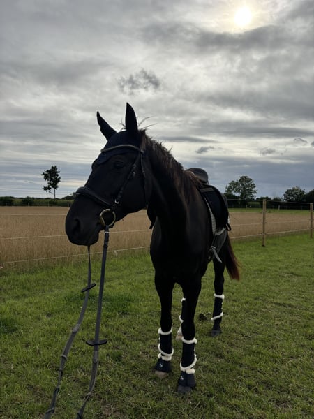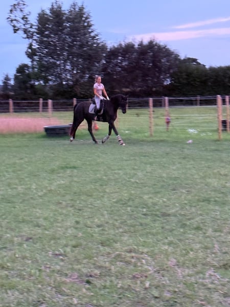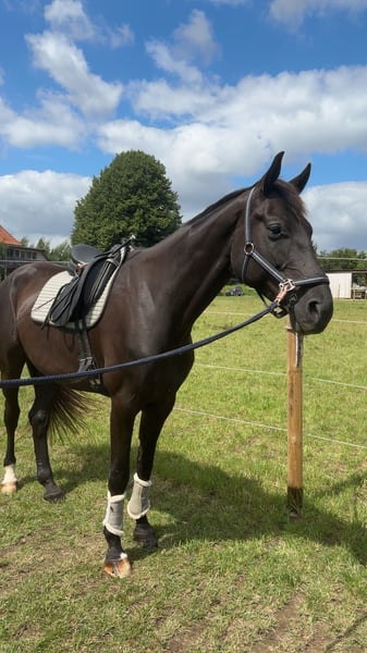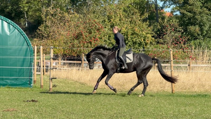 Schweren Herzens habe ich mich dazu entschieden, meinen 8-jährigen Oldenburger Wallach Silent Sanyo zu verkaufen. Sanyo ist ca. 1,75 m groß und ein absolutes Herzenspferd mit einem liebevollen Charakter. Er ist sehr verschmust, menschenbezogen und für ein Möhrchen jederzeit zu begeistern. Er besitzt volles Papier und stammt ab von Sensation x Hello Kitty. Sanyo ist ein Spätentwickler und durfte nach seiner Zeit im Beritt bei der Vorbesitzerin bei uns noch einmal ganz in Ruhe Pferd sein. Anschließend wurde er schonend und altersgerecht wieder antrainiert. Im Rahmen einer Untersuchung wurde ein Zufallsbefund Kissing Spines festgestellt. Dieser Befund bereitet ihm keinerlei Probleme. Sanyo ist vollständig belastbar und wird ganz normal gearbeitet und geritten. Gerne erkläre ich dies im persönlichen Gespräch näher. Zurzeit wird er 2–3 Mal pro Woche geritten, zusätzlich abwechslungsreich vom Boden gearbeitet und hat einen festen Ruhetag pro Woche. Im vergangenen Sommer hat Sanyo seine Freude am Springen entdeckt. Er steht hier noch am Anfang, zeigt sich jedoch sehr motiviert, mutig, ohne Scheu und mit viel Zug zum Sprung – ein Bereich, der sich definitiv weiter ausbauen lässt. Sanyo kennt bereits vieles und war auch alleine im Gelände unterwegs. Dennoch sucht er einen erfahrenen Reiter, der ihm Sicherheit gibt. Er ist niemals bösartig, kann jedoch jungpferdetypisch auch einmal einen Bocksprung machen oder unsicher reagieren, bleibt dabei aber stets gut händelbar. Im täglichen Umgang ist er ein absoluter Engel. Unarten wie Beißen oder Treten kennt er nicht, lediglich manchmal etwas ungeduldig, was sich mit zunehmender Routine immer weiter legt. Aktuell arbeiten wir intensiv an seiner Balance, da ihm diese aufgrund seines langen Körpers und seiner langen Beine noch etwas schwerfällt. Sanyo ist alle 4–6 Wochen bei der Huforthopädin und erst vor 2 Monaten osteopathisch durchgecheckt worden mit ausschließlich positivem Feedback. Er ist ein Pferd, das sich in der täglichen Arbeit sehr viel Mühe gibt, gefallen möchte und stets versucht, alles richtig zu machen. Seine Motivation und sein Wesen machen ihn unverwechselbar, er sucht lediglich nach neuen Aufgaben. Mit diesem Pferd hat man wirklich den Jackpot gewonnen. Oft denkt man sich „ach, typisch Sanyo“ – und genau diese Einzigartigkeit macht ihn so liebenswert. Beim Schmied ist er lieb, manchmal etwas ungeduldig, was sich mit der Zeit weiter bessert. Wichtig zu wissen: Sanyo hatte einen Verladevorfall, weshalb die Stange aktuell nicht problemlos geschlossen werden kann. In diesem Fall müsste er sediert werden oder es wird eine alternative Lösung gefunden. Ich wünsche mir für Sanyo einen Menschen, der sein liebes Wesen zu schätzen weiß und es nicht ausnutzt. Er soll eine feste Bezugsperson bekommen. Sanyo kennt sowohl Offenstall- als auch Boxenhaltung, schön wäre ein Zuhause mit viel Weidegang. Mit Stuten ist er nicht verträglich. Die Entscheidung fällt mir nicht leicht, und Sanyo wird ausschließlich in beste Hände abgegeben. Bei ernsthaftem Interesse meldet euch gerne und lernt diesen wunderschönen Burschen kennen. Aber Vorsicht : *Er ist ein Pferd zum Verlieben*. Falls ich etwas vergessen haben sollte, schreibt mir gerne – es gibt einfach unglaublich viel über dieses tolle Pferd zu erzählen. Probereiten ist möglich, ebenso kann er vorgeritten werden. Für Probereiten und Vorreiten wird eine Gebühr von 30 € erhoben, die bei Kauf selbstverständlich angerechnet wird.
