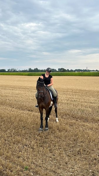 Aufgrund vieler privater Veränderungen (Studium, Arbeit, Wohnortswechsel) sehe ich mich gezwungen meinen 8-jährigen (gebürtig ungarischen) Oldenburgerwallach „Donnerwetter Sandro“ (Sandro Hit und Donnerhall in der Abstammung) in liebevolle Hände und bestenfalls in ein für-immer-Zuhause abzugeben. Donnerwetter steht seit fast drei Jahren in meinem Besitz. Momentan wird er aufgrund eines Befundes, nach krankheitsbedingtem Ausfall und einer Operation schonend wieder aufgebaut. Nach vollständiger Rehabilitation ist laut Tierärzten eine uneingeschränkte Reitbarkeit nicht ausgeschlossen. Da er momentan nicht entsprechend vor- oder probegeritten werden kann und darf, wird er lediglich gegen eine Schutzgebühr, mit Vorkaufsrecht und mit vorheriger Platzkontrolle in ein pferdeerfahrenes, neues Zuhause und ausdrücklich als Beisteller abgegeben. Selbstverständlich darf nach einem gegenseitigen Kennenlernen Einsicht in alle Unterlagen (Röntgen-/Ultraschallbilder, Op-Bericht etc.) genommen werden und bei ernsthaftem Interesse von beiden Seiten, spricht für mich auch nichts gegen einen direkten Austausch zwischen dem potentiellen neuen Besitzer und dem behandelnden Tierarzt. Donnerwetter wird nicht aus einer Notsituation raus verkauft. Ich suche wirklich mit Zeit und Geduld ein passendes Zuhause für ihn. Der charakterstarke (sowohl am Boden als auch unter dem Sattel) aber ehrliche und aufgeschlossene Wallach braucht eine erfahrene Bezugsperson an seiner Seite, mit der er dann durch dick und dünn geht. Er trägt momentan einen Spezialbeschlag (vorne) und ist hinten barhuf. Im Herdenverband mit anderen Wallachen ist er sehr sozial und tendenziell ranghoch aber fair. Er hat auch mit 8 Jahren noch einen Spieltrieb. Auch wenn er aktuell einzeln in einer Paddockbox untergebracht ist, könnte ich ihn mir auch sehr gut in einer Gruppenauslaufhaltung vorstellen. Er ist absolut schmiede- und verladefromm und lässt sich sowohl alleine als auch in der Gruppe unerschrocken und straßenverkehrssicher ins Gelände reiten. Außerdem ist er sehr leicht durchs Genick zu reiten und trotz guten Bewegungen sitzbequem und mit angenehmen „Go“ ausgestattet, auch wenn er ab und an mal seine Grenzen hinterfragt, ist er dabei nicht gefährlich. (kein Steigen oder Durchgehen). Auch bei Auswärtstrainings war er stets mutig und gut zu händeln. Er ist äußerst intelligent und bringt mit Sicherheit auch Freude und Talent für Freiarbeit und Zirkustricks mit, was bei uns aber nicht weiter gefördert wurde. Sowohl an der Longe als auch an der Hand läuft er zuverlässig und gehorsam. Melden Sie sich gerne für Reitvideos und auch für aktuelles Bild- und Videomaterial. Für weitere Fragen oder detaillierte Informationen stehe ich jederzeit gerne telefonisch zur Verfügung. Donnerwetter und ich freuen uns auf ein baldiges Kennenlernen!
