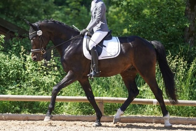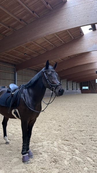 Due to numerous personal changes (studies, work, relocation), I am forced to find a loving new home—preferably a forever home—for my 8-year-old Oldenburg gelding “Donnerwetter Sandro” (sired by Sandro Hit and Donnerhall). Sandro has been in my possession for nearly three years. Currently, he is being carefully rehabilitated following a health issue, including a period of illness and surgery. According to veterinarians, once fully recovered, there is no reason he cannot be fully rideable again. Since he cannot be properly ridden or tested at the moment, he is being offered solely against a small adoption fee, with a right of first refusal, and after a pre-placement inspection, to an experienced horse person. He is expressly intended as a companion horse. Of course, after mutual acquaintance, all documents (X-ray and ultrasound images, surgery reports, etc.) can be reviewed. If both sides are genuinely interested, I am also open to direct contact between the prospective new owner and the treating veterinarian. Donnerwetter is not being sold out of an emergency situation. I am genuinely seeking a suitable home for him with patience and time. This characterful gelding (both on the ground and under saddle), honest and open-minded, needs an experienced handler who can be his reliable partner through thick and thin. He currently wears special front shoes and is barefoot behind. In a herd with other geldings, he is very social, tends to be dominant but fair. At 8 years old, he still has a playful side. Although currently housed alone in a paddock box, I could also very well imagine him in a group turnout. He is absolutely bombproof when it comes to farrier and loading, and he is unafraid and traffic-safe both alone and in a group when hacking out. He is very light in the bridle, comfortable to sit, and has a good “go,” despite his good movement. He occasionally tests his boundaries but is never dangerous (no rearing or bolt-through). He has always been brave and well-behaved during outings and training sessions. He is extremely intelligent and likely has talent and joy for liberty work and circus tricks, although we have not actively trained these. He reliably and obediently works on the lunge and in hand. Please feel free to contact me for riding videos and current photos or videos. For further questions or detailed information, I am always happy to be reached by phone. Donnerwetter and I look forward to a soon-to-be meeting!