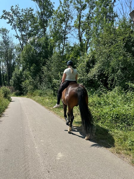 A causa di numerosi cambiamenti personali (studio, lavoro, cambio di residenza), mi vedo costretto a trovare una nuova famiglia e, preferibilmente, una sistemazione definitiva per il mio stallone Oldenburger di 8 anni, “Donnerwetter Sandro” (con sangue di Sandro Hit e Donnerhall). Sandrowetter è con me da quasi tre anni. Attualmente, a seguito di una diagnosi, di un infortunio e di un intervento chirurgico, viene rimesso in forma con un percorso di recupero graduale. Secondo i veterinari, una volta completata la riabilitazione, non si esclude che possa tornare ad essere completamente rittabile. Dato che al momento non può essere montato né provato adeguatamente, viene affidato esclusivamente contro una quota di tutela, con diritto di prelazione e previa verifica del luogo, a un proprietario esperto, come animale da compagnia, e in modo esclusivo come stallone da compagnia. Naturalmente, dopo un primo incontro, sarà possibile visionare tutti i documenti (radiografie, ecografie, referti di interventi, ecc.), e in caso di interesse serio da entrambe le parti, non ci sono obiezioni a un contatto diretto tra il potenziale nuovo proprietario e il veterinario curante. Donnerwetter non viene venduto in emergenza. Cerco con calma e pazienza una sistemazione adatta per lui. Il cavallo, dal carattere forte (sia a terra che sotto la sella), ma onesto e aperto, ha bisogno di una persona esperta che possa essere il suo punto di riferimento, con cui affrontare insieme tutte le sfide. Attualmente porta un ferratura speciale (anteriore) e ha i posteriori nudi. In un branco con altri stalloni, si mostra molto sociale, tendenzialmente dominante ma giusto. A 8 anni, conserva ancora il desiderio di giocare. Anche se attualmente è tenuto in una paddock individuale, lo immagino molto bene anche in un gruppo con spazi all’aperto. È completamente abituato alla fucina e al carico, e si lascia condurre senza paura sia da solo che in gruppo, mostrando sicurezza anche in ambienti esterni. Inoltre, è molto facile da montare, leggero sul collo, e, nonostante abbia un buon movimento, è comodo per il cavaliere e dotato di un’andatura piacevole e di un buon “go”. Anche se a volte mette in discussione i propri limiti, non è mai pericoloso (nessuna scalata o fuga). In allenamento esterno si è sempre dimostrato coraggioso e facile da gestire. È estremamente intelligente e sicuramente ha talento e piacere per il lavoro a mano e i trick di circo, anche se finora non sono stati particolarmente sviluppati. Sia al longe che a mano, si comporta in modo affidabile e obbediente. Per foto e video di monta, o altre informazioni aggiornate, non esitate a contattarmi. Per qualsiasi domanda o dettaglio, sono disponibile telefonicamente in qualsiasi momento. Donnerwetter e io aspettiamo con entusiasmo di conoscerci presto!