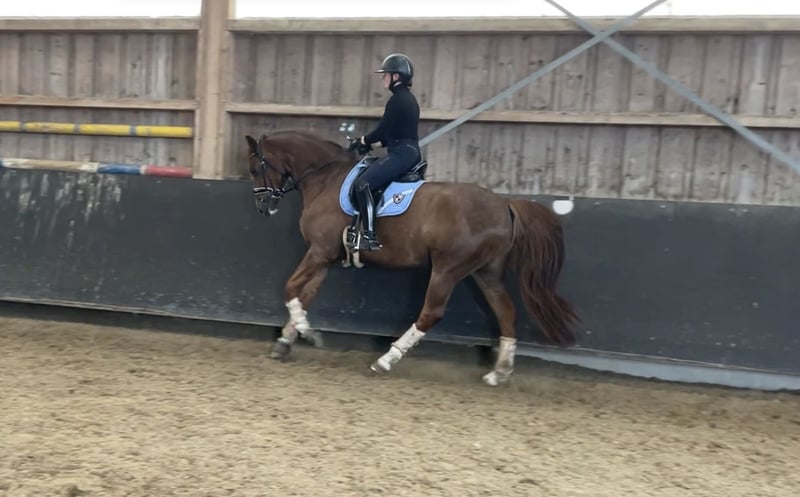 Zum Verkauf steht dieser wunderschöne, 8jährige Dunkelfuchswallach. Aktuell auf Dressurpferde L Niveau geritten, jedoch Potenzial für mehr bei entsprechender Förderung. Egal ob Dressurarbeit, Longieren oder Ausreiten - er ist stets motiviert und möchte immer gefallen. Keinerlei Unarten und verträglich mit anderen Pferden. Bei Interesse oder Fragen bitte unter der angegebenen Nummer melden.