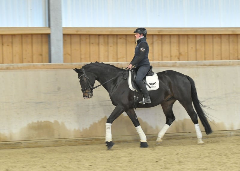 Stylish all-rounder with successes and placings in classes L and M is an experienced dressage horse who performs confidently at his level, is lesson-sure, and has an excellent attitude. Recommended for the ambitious dressage rider, he is a pleasure to ride, and his smooth, comfortable canter makes it very easy to gauge distances.