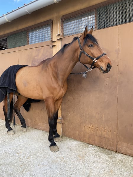 Viene venduto un cavallo Oldenburg di 8 anni, alto 1,74 m, castrato. Ha un carattere molto buono, è molto affettuoso e equilibrato. Le vaccinazioni sono aggiornate. Ideale per dressage e/o passeggiate.
