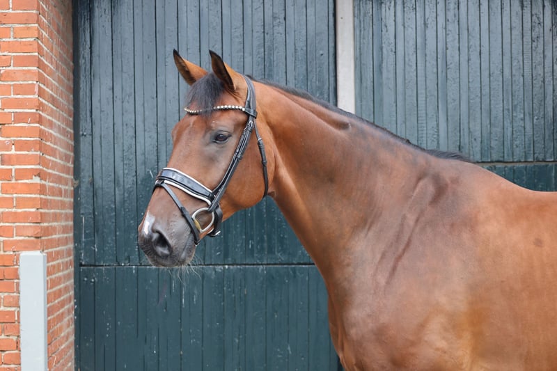 Burley is een charmante ruin geboren in 2017. Zijn afstamming is van Benicio x Floriscount uit een staatspremie merrie. Burley is een uitmuntend dressuurpaard die de lessen op gevorderd (S) niveau al onder de knie heeft. Afgelopen seizoen heeft hij zich meerdere keren succesvol geplaatst in dressuurproeven op middelmatig niveau voor jonge paarden. Maar Burley is niet alleen sterk in dressuur: hij springt ook graag tot een hoogte van 120 cm. Daarnaast heeft hij zijn eerste ervaring al opgedaan in de eventing. Burley's karakter is bijzonder opvallend. Hij is een extreem rustig en eerlijk paard dat zich kenmerkt door zijn kalmte en betrouwbaarheid. Deze kwaliteiten maken hem een ideale partner voor jonge ruiters die op zoek zijn naar een betrouwbaar en goed getraind sportpaard. Burley is ook extreem mensgericht en is graag in de buurt van zijn verzorgers. Hij houdt van knuffelen en is blij met elke vorm van aandacht. Als je op zoek bent naar een veelzijdig en liefdevol paard, neem dan contact met ons op. Voor meer informatie of om een afspraak te maken voor een bezichtiging, horen we graag van je.