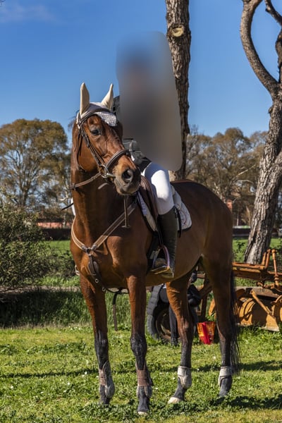 Baia, mare – 9 years old – 17.1 hh Female horse with passport, suitable for English riding, with a great aptitude for show jumping. Well-built in all three gaits, balanced, responsive, and with a good mouth. Reliable in daily management, easy to ride, and cooperative both in and out of the arena. Dependable and performance-oriented.