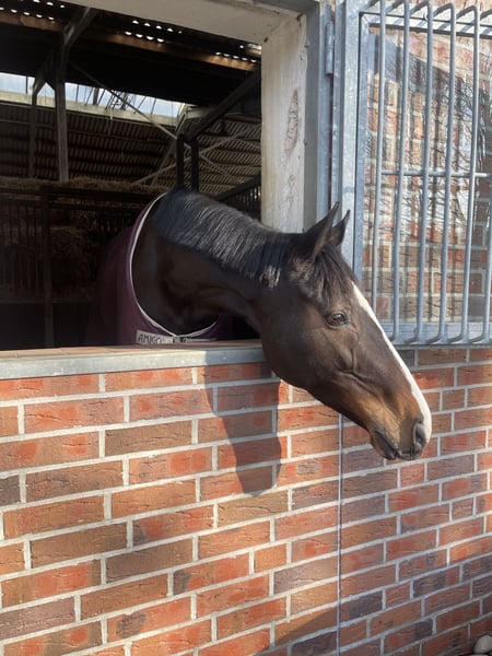 Lief paard voor de verkoop: een mooie Engelse Volbloed merrie (2015*, ongeveer 1,65 m, New Approach x Nashmiah). Sina kent dressuurtraining in onze hal, evenals kleine sprongen en gaat braaf aan de longe + dubbele longe. Ook het buitenritten is haar bekend, al heb ik dat niet heel regelmatig met haar gedaan. Als typische merrie kan ze soms wat prikkelbaar zijn, bijvoorbeeld bij het aanleggen van de singel of het dekken. Verder is ze braaf en laat ze bijna alles met zich doen. Ik heb haar in de vrijetijds dressuur gereden en af en toe kleine sprongen gemaakt. Ze heeft dat altijd uitstekend gedaan en toont veel leergierigheid. Op dit moment zou ze waarschijnlijk nog iets beter in training kunnen staan en meer uitgewerkt zijn, maar door mijn opleiding heb ik helaas niet de tijd. Ze is uiteraard bekend met de dierenarts, hoefsmid en tandarts. Het hanteerbaar maken in de trailer vormt geen probleem. Bij ons staat ze samen met een ruin en een merrie. Daarnaast is alle bijbehorende uitrusting te koop (dressuurzadel, springzadel, hoofdstel, dekens…). Een proefrit is uiteraard mogelijk. De prijs is nader overeen te komen, stuur gerust een berichtje voor meer informatie.