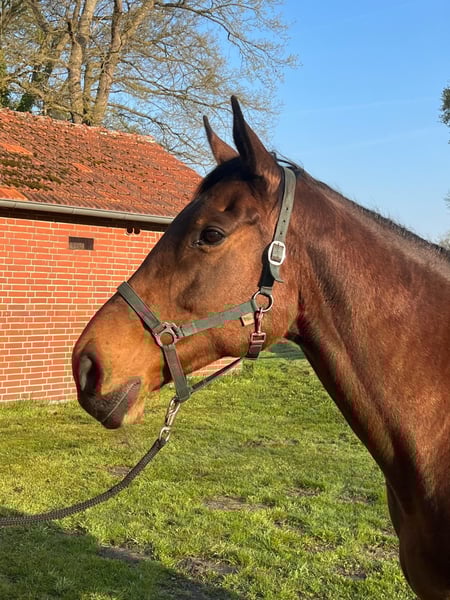11 jährige, grossrahmige Vollblutstute auch für die Warmblutzucht geeignet. Erfolgreiche Hindernisspferde in England. Bisher 3 Nachzuchten: 1. ist als Jährling nach Serbien verkauft. 2. Stute von Soldier Hollow, war siegreich 4 jährig. 3. Jährlingsstute von Torquator Tasso z. Zt. 152 cm Stock auch abzugeben. Eva hat auch schon zwei Fohlen saugen lassen, als sie auf Dauerweide war.