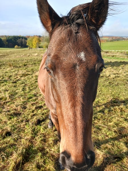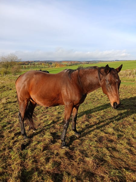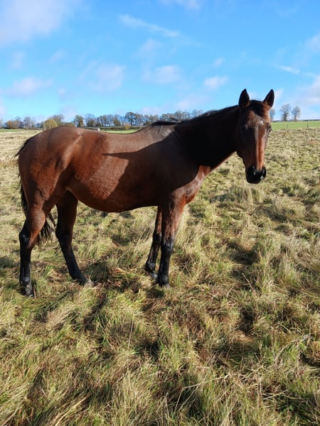 For sale: a Thoroughbred mare with full papers. She previously raced on the track. She suffered a tendon injury that has fully healed. Isla is not suitable for beginners, as she has a lot of temperament. Ideally, she would thrive in a setting where she can be worked both in the arena and on the trail. If she is left standing for a long time, she becomes restless and difficult. Trial rides are only recommended for experienced riders. She has been on pasture for the past six months, as her owner is unable to ride her due to health reasons. She is being offered below the market price because she urgently needs a new purpose; she should not become a trophy horse. Quality takes precedence over price. Trial rides cost €30 and will be deducted from the purchase price. Please contact me via WhatsApp, as the mobile network is limited.