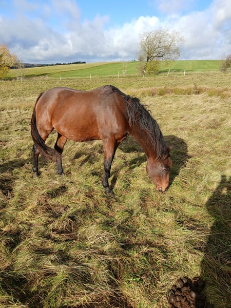Zum Verkauf steht eine Vollblutstute mit vollen Papieren . Sie ist früher auf der Rennbahn gelaufen. Sie hatte eine Sehnenverletzung die vollständig ausgeheilt ist. Isla ist kein Anfängerpferd. Sie hat viel Temperament. Idealerweise wäre ein Platz wo sie sowohl im Gelände als auch auf dem Reitplatz gearbeitet werden kann. Wenn Sie lange steht wird sie unzufrieden und schwierig. Probetreiten nur erfahrene Reiter. Sie steht seit 6 Monaten auf der Weide, da ihre Besitzerin aus gesundheitlichen Gründen sie nicht reiten kann. Sie wird unter Preis abgegeben, da sie dringend eine neue Aufgabe braucht, sie soll kein Wanderpokal werden. Platz vor Preis. Probereiten kosten 30 Euro und wird beim Kauf verrechnet. Gerne per WhatsApp, da das Handynetz nicht gut ist.