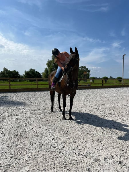 ON BEHALF❗️ Donna Philippa is a dark brown Thoroughbred mare born on February 16, 2010, from German breeding and approximately 1.63 m tall. She is sired by Sternkönig (IRE) (father) and Dushinka (IRE) (mother). Her damsire is Titus Livius (FR). She has lovingly brought three foals into the world, one of which also successfully raced in 2022. (“Don Chi” (GER) as a foal in the last two pictures) We took over Donna Philippa in May 2025 from poor conditions and have rebuilt her with a lot of love and time. After her rehabilitation, she was gently re-trained and is now looking for a loving, permanent home as a leisure horse. Under saddle, she is well-behaved in all three basic gaits (walk, trot, canter). She is responsive to aids, very willing to learn, and pleasant to ride. Occasionally, she may react a bit spookily, but she calms down well and remains manageable. She has a sweet, friendly temperament and is perfect for a sensitive leisure rider who enjoys a well-trained, responsive horse. Since Donna has been in our possession, she has been kept in an active stable, amidst a large herd of mares. We would wish for her to continue being kept in an open stable. If you are interested or have further questions, please contact us via message or by phone at 01701715950. Viewing and trial rides are possible by arrangement. Location: Germany