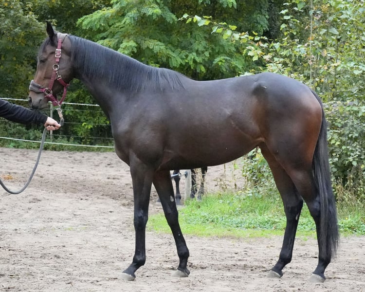 For sale is a brown mare, born in 2022, with a height of 1.65 m. She is sired by Lord of England out of Swingdream, a daughter of Soldier Hollow. The mare is offered as a future broodmare. She had a minor tendon injury in her front right leg, which is why no athletic use is intended. She is regularly vaccinated and is pleasant to handle. Further information or current photos/videos can be provided upon request. 📍 Location: Neuenhagen near Berlin 15366, Kiefernallee 23, Rennstall Sarka Schütz 🧬 Pedigree: Lord of England x Swingdream (Smaranda x Soldier Hollow) 📏 Height: 1.65 m 💉 Health: vaccinated, minor tendon injury in front right leg