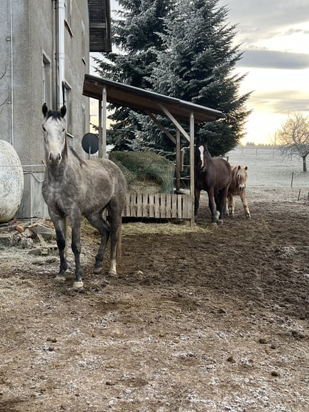 With a heavy heart, due to personal changes, I am selling my 4-year-old mare. Last year, we started lunging her and introducing the saddle. Unfortunately, I had to change stables, and things didn’t go as planned. I no longer have the opportunity to work with her. In the meantime, a lot has changed privately, and I am unable to keep her anymore. She tends to be more dominant and playful at her current stable. Initially, she can be somewhat wary of strangers until she gets to know them. She still needs a lot of training but is generally sweet and enjoys cuddling. She was regularly attended to for hoof care and has only ever been kept in an open stable. Serious inquiries only! She is for sale, not for free! Feel free to contact me if you have any questions.